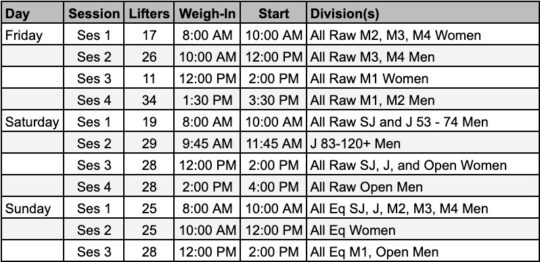 Flights will be assigned based on qualifying totals achieved in Powerlifting America, NAPF, IPF, and IPF affiliate events. Only totals from the same or lower weight class will be considered when assigning flights.